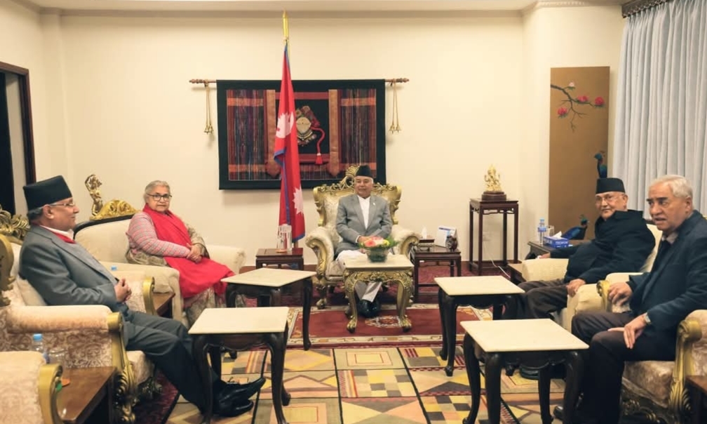 राष्ट्रपति भवन शीतलनिवासमा मङ्गलबार अपराह्न राष्ट्रपति रामचन्द्र पौडेलको उपस्थितिमा प्रधानमन्त्री सुशीला कार्की, नेपाली कांग्रेसका सभापति तथा पूर्वप्रधानमन्त्री शेरबहादुर देउवा, नेकपा एमालेका अध्यक्ष तथा पूर्वप्रधानमन्त्री केपी शर्मा ओली र नेपाली कम्युनिस्ट पार्टी (नेकपा) का संयोजक तथा पूर्वप्रधानमन्त्री पुष्पकमल दाहाल ‘प्रचण्ड’बीच भएको छलफलमा यस्तो सहमति जुटेको हो।