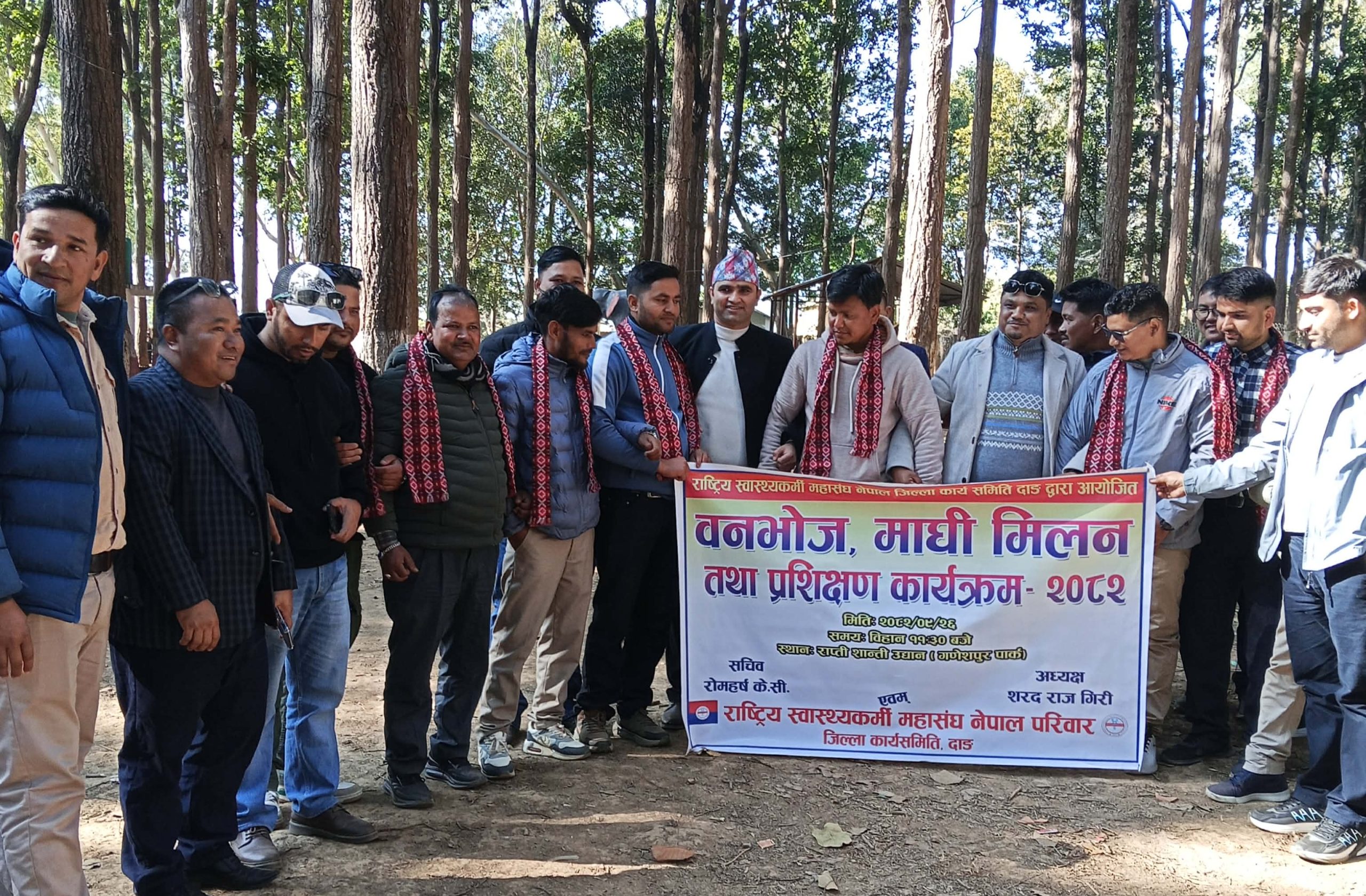 २६ पुस/ राष्ट्रिय स्वास्थ्यकर्मी महासंघ जिल्ला समिति दाङको आयोजनामा वनभोज, माघी मिलन, प्रशिक्षण तथा संगठन विस्तार कार्यक्रम उत्साहपूर्ण रूपमा सम्पन्न भएको छ।
